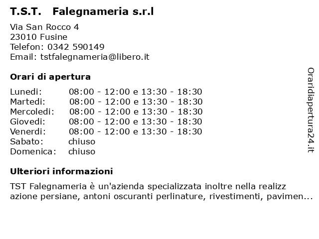 Martedi | 08:00-12:00 e 13:30-18:30 |