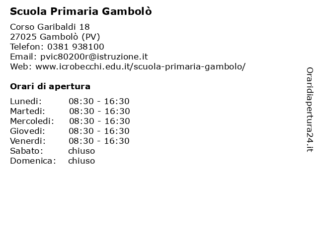 1 Istituto Comprensivo G. e G. Robecchi (Dirigente Scolastico) (distanza: 0,00 km) Corso Garibaldi 18, 27025 Gambolò (PV) (dirigente, comprensivo, g., istituto, istruzione, materie, robecchi, scolastico), scuola, segreteria 2 Istituto Comprensivo G. e G. Robecchi (Segreteria Invernale) (distanza: 0,00 km) Corso Garibaldi 18, 27025 Gambolò (PV) (segreteria, (segreteria), comprensivo, g., invernale), istituto, istituto comprensivo, istituto scolastico, robecchi, scuola 3 Istituto Comprensivo G. e G. Robecchi (Segreteria Estivo) (distanza: 0,00 km) Corso Garibaldi 18, 27025 Gambolò (PV) (segreteria, comprensivo, estivo), g., istituto, istruzione, materie, robecchi, scuola, segreteria 4 Scuola Secondaria di Primo Grado Gambolò (distanza: 0,01 km) Corso Garibaldi 20, 27020 Gambolò (PV) di, gambolò, grado, istituto comprensivo, istituto scolastico, primo, scuola, secondaria 5 Scuola dell'Infanzia Statale (Istituto Comprensivo L. G. Poma) (distanza: 8,34 km) Via San Zeno snc, 27026 Garlasco (istituto, comprensivo, dell'infanzia, g., istituto scolastico, l., poma), scuola, statale 6 Scuola Primaria Parona (distanza: 8,96 km) Via Papa Giovanni XXIII s.n.c., 27020 Parona istituto scolastico, parona, primaria, scuola |
