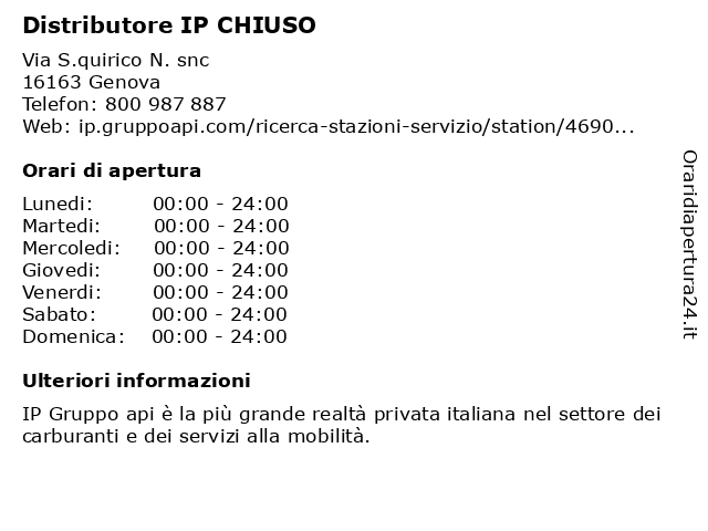 1 Distributore IP (distanza: 0,18 km) Via Romairone 6, 16163 Genova distributore, fornitore di benzina, fornitore di carburante diesel, ip, stazione di servizio per il cambio dell'olio, stazione di servizio per il soccorso stradale 2 Distributore IP (distanza: 2,07 km) Via Teglia N. 190/r, 16161 Genova distributore, fornitore di benzina, fornitore di carburante diesel, ip, stazione di servizio per il cambio dell'olio, stazione di servizio per il soccorso stradale 3 Distributore IP (distanza: 2,28 km) Via Polonio N. 2/r, 16100 Genova distributore, fornitore di benzina, fornitore di carburante diesel, ip, stazione di servizio per il cambio dell'olio, stazione di servizio per il soccorso stradale 4 Distributore IP (distanza: 3,32 km) Via Vezzani N. 266/r, 16159 Genova distributore, fornitore di benzina, fornitore di carburante diesel, ip, stazione di servizio per il cambio dell'olio, stazione di servizio per il soccorso stradale 5 Distributore IP (distanza: 5,94 km) Via Ambrogio Spinola N. 2ar , 16135 Genova distributore, fornitore di benzina, fornitore di carburante diesel, ip, stazione di servizio per il cambio dell'olio, stazione di servizio per il soccorso stradale 6 Distributore IP (distanza: 6,28 km) Via Piacenza N. snc, 16138 Genova distributore, fornitore di benzina, fornitore di carburante diesel, ip, stazione di servizio per il cambio dell'olio, stazione di servizio per il soccorso stradale |