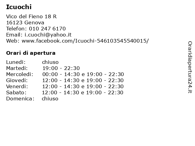 | Giovedi | 12:00-14:30 e 19:00-22:30 |