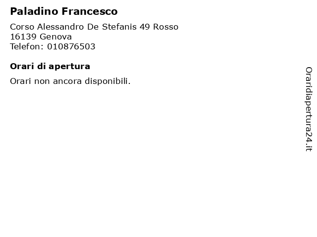 | 1 Il Paladino Investigazioni Di Mafrici Giuseppe (distanza: 1,65 km) C. Buenos Aires 7/1, 16129 Genova giuseppe, investigazioni, mafrici, paladino 2 La Cantina Dello Zio Di Paladino Lidio (distanza: 4,96 km) Via Giacomo Buranello 222/r, 16149 Genova bottiglierie, cantina, lidio, paladino, superalcolici, vini, zio 3 C.p. System Snc Di Carubini Luigi e Paladino Claudio (distanza: 8,33 km) Via Ursone Da Sestri 41/r, 16154 Genova articoli, carubini, claudio, comm, dett, luigi, paladino, system, vari 4 C.p. System Snc Di Carubini Luigi e Paladino Claudio (distanza: 8,34 km) Via Luigi Marchelli 12/r, 16154 Genova articoli, carubini, claudio, comm, dett, luigi, paladino, system, vari 5 C.p. System Snc Di Carubini Luigi e Paladino Claudio (distanza: 8,37 km) Via Carlo Goldoni 38/r, 16154 Genova articoli, carubini, claudio, comm, dett, luigi, paladino, system, vari 6 Pronto Pizza (distanza: 21,98 km) Via Sant' Anna 25, 16035 Rapallo catering, mirco, paladino, pizza, pronto, ristoranti |