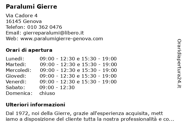 Lunedi | 09:00-12:30 e 15:30-19:00 |