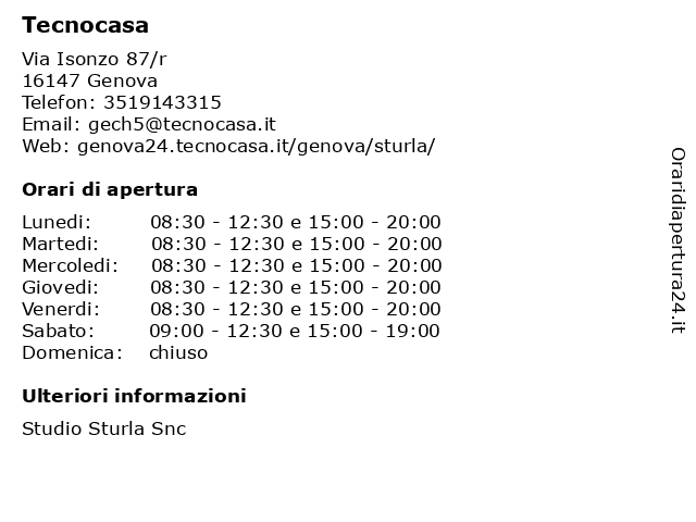 | Sabato | 09:00-12:30 e 15:00-19:00 |