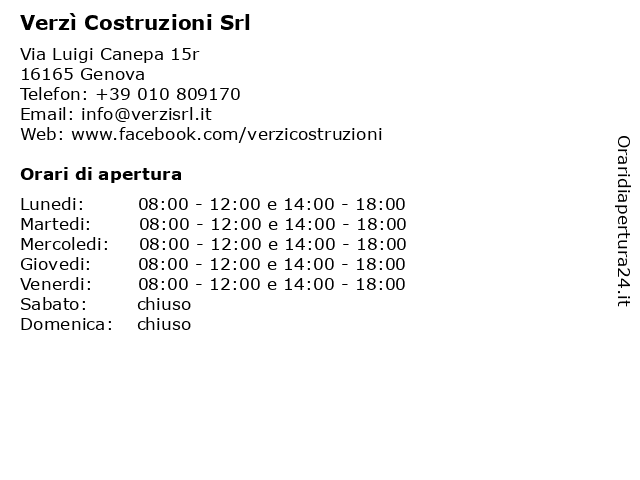 | Venerdi | 08:00-12:00 e 14:00-18:00 |