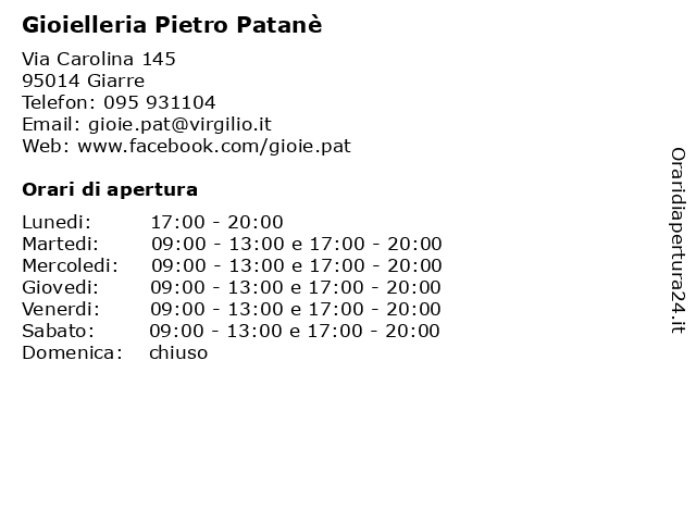 1 F.lli A. e R. Patanè snc (Orario Contrattazioni) (distanza: 0,07 km) Via Finocchiaro Aprile 75, 95014 Giarre (orario, a., contrattazioni), f.lli, mercato ortofrutticolo, ortofrutticolo, patanè, r., snc, verdure 2 Patanè snc (Orario Contrattazioni) (distanza: 0,07 km) Via Finocchiaro Aprile 75, 95014 Giarre (orario, contrattazioni), mercato ortofrutticolo, ortofrutticolo, patanè, snc, verdure 3 Gioielleria D'Ambra (distanza: 0,17 km) Via Callipoli 148, 95014 Giarre ambra, d'ambra, gioielleria, gioiellerie, oro 4 Rosy Patanè Parrucchieri (distanza: 0,91 km) Corso Lombardia 70, 95014 Giarre acconciature, donna, parrucchiere, parrucchieri, patanè, rosy, salone 5 ECOSiga di Giovanni Patanè (distanza: 1,88 km) Via F.lli Cairoli 57, 95014 Giarre Riposto bar, club, di, ecosiga, giovanni, hotel, patanè, pizzeria, ristorante 6 Falegnameria Etnea di Leonardo Patanè (distanza: 3,94 km) Via Immacolata s.n.c., 95016 Mascali da ardere, di, etnea, falegnameria, legna, leonardo, patanè, privati, ristoranti |