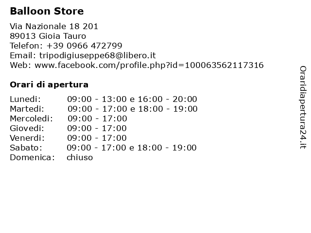 | Lunedi | 09:00-13:00 e 16:00-20:00 |