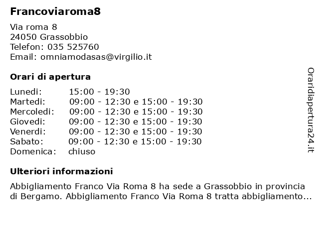 | Martedi | 09:00-12:30 e 15:00-19:30 |