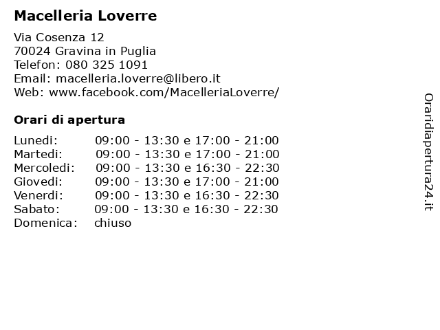 Mercoledi | 09:00-13:30 e 16:30-22:30 |