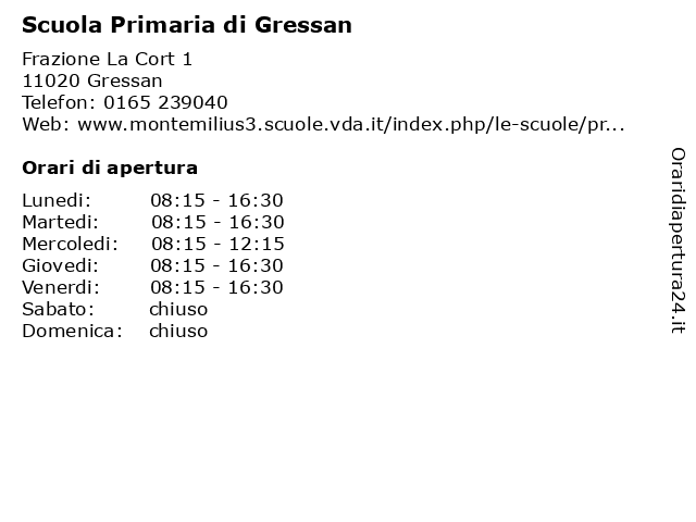 1 Comune di Gressan (Guichardaz Erika - Assessore alla Cultura ed Istruzione) (distanza: 0,07 km) Fraz. Taxel 1, 11020 Gressan (AO) (guichardaz, alla, assessore, comune, cultura, di, ed, erika, gressan, gressan comune, istruzione), uffici comunali gressan 2 Scuola dell'Infanzia di Gressan (distanza: 0,08 km) Frazione Taxel 4, 11020 Gressan asilo, dell'infanzia, di, dirigente scolastico, elementari, gressan, infanzia, istituto comprensivo, istruzione, lezioni, liceo, medie, primaria, scuola, scuola dell'infanzia, scuola elementare, scuola materna, scuola media, scuola paritaria, scuole 3 Scuola Primaria Giovanni Pezzoli (distanza: 1,45 km) Via Parigi 137, 11100 Aosta asilo, dirigente scolastico, elementari, giovanni, infanzia, istituto comprensivo, istruzione, lezioni, liceo, medie, pezzoli, primaria, scuola, scuola dell'infanzia, scuola elementare, scuola materna, scuola media, scuola paritaria, scuola primaria, scuole 4 Scuola dell'Infanzia Oreste Marcoz (distanza: 1,86 km) Via Monte Grivola 16/A, 11100 Aosta asilo, dell'infanzia, dirigente scolastico, elementari, infanzia, istituto comprensivo, istruzione, lezioni, liceo, marcoz, medie, oreste, primaria, scuola, scuola dell'infanzia, scuola elementare, scuola materna, scuola media, scuola paritaria, scuole 5 Scuola Primaria Ettore Ramires (distanza: 2,04 km) Via Chavanne 23K, 11100 Aosta asilo, dirigente scolastico, elementari, ettore, infanzia, istituto comprensivo, istruzione, lezioni, liceo, medie, primaria, ramires, scuola, scuola dell'infanzia, scuola elementare, scuola materna, scuola media, scuola paritaria, scuola primaria, scuole 6 Istituto San Giovanni Bosco - Scuola dell'Infanzia (distanza: 2,13 km) Corso Battaglione Aosta 95, 11100 Aosta asilo, bosco, dell'infanzia, dirigente scolastico, elementari, giovanni, infanzia, istituto, istituto comprensivo, istruzione, lezioni, liceo, medie, primaria, san, scuola, scuola dell'infanzia, scuola elementare, scuola materna, scuole |