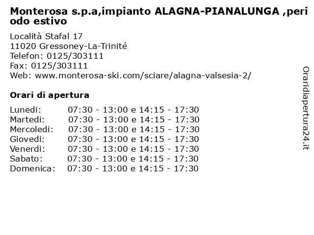 | Lunedi | 07:30-13:00 e 14:15-17:30 |