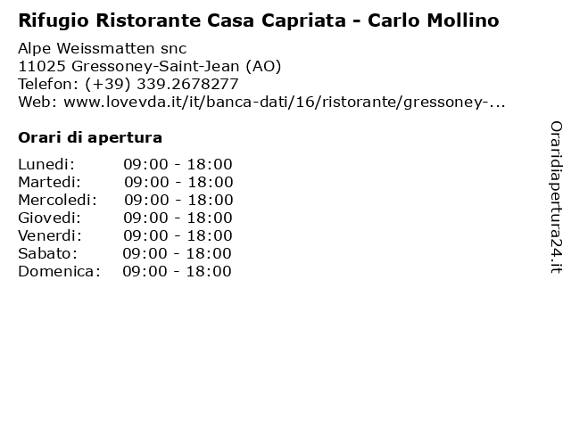 1 Rifugio Casa Capriata (distanza: 2,85 km) Localita' Weissmatten Snc, 11025 Gressoney Saint Jean bianco, capriata, casa, catering, massimo, rifugio, ristoranti 2 Rifugio Arp (distanza: 3,71 km) Località Pian Fret s.n.c, 11022 Brusson alloggio, arp, hotel, pub, rifugio, risto 3 Rifugio Arp (distanza: 3,79 km) Località Pian Fret s.n.c, 11022 Brusson alloggio, arp, hotel, pub, rifugio, risto 4 Rifugio Punta Jolanda (distanza: 6,64 km) Punta Jolanda s.n.c, 11020 Gressoney La Trinité fast food, gusto, jolanda, pizzeria, punta, rifugio, ristorante 5 Rifugio Arp (distanza: 7,81 km) Località Pian Fret Palasinaz snc, 11022 Brusson (AO) arp, cucina casalinga, cucina valdostana, rifugio, ristorante 6 Rifugio Guide di Frachey (distanza: 9,52 km) Localita' Resy snc, 11020 Champoluc, Valle D'Aosta bar, club, di, frachey, guide, pizzeria, rifugio, ristorante |