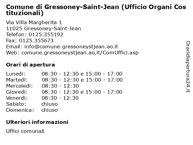 1 Comune di Gressoney-Saint-Jean (Ufficio Segreteria, Organi Istituzionali e Contratti) (distanza: 0,31 km) Via Villa Margherita 1, 11025 Gressoney-Saint-Jean (ufficio, comune, contratti, contratti), gressoney, istituzionali, jean, organi, saint, segreteria, uffici, ufficio 2 Comune di Gressoney-Saint-Jean (Ufficio Segreteria, Organi Istituzionali e Contratti) (distanza: 0,81 km) Località Villa Margherita 1, 11025 Gressoney-Saint-Jean (ufficio, comune, contratti), gressoney, istituzionali, jean, organi, saint, segreteria, segreteria), uffici, ufficio 3 Istituto Regionale a. Gervasone (distanza: 14,51 km) Piazza Duc 13, 11024 Chatillon esecutivi, gervasone, istituto, organi, regionale 4 Casa Serena (distanza: 33,55 km) Corso Roma 35, 13019 Varallo casa, comuni, esecutivi, montana, organi, serena, unione, valsesia 5 Comune Di Fiorano Canavese (distanza: 34,46 km) Via Marconi 27, 10010 Fiorano Canavese canavese, esecutivi, fiorano, organi 6 AIDO Associazione Italiana Donatori Organi e Tessuti (distanza: 35,76 km) Viale Paietta 2, 13836 Cossato aido, aiuto, aiuto ai cittadini, associazione, donatori, informazione, italiana, organi, tessuti, tutela ai cittadini, volontariato |