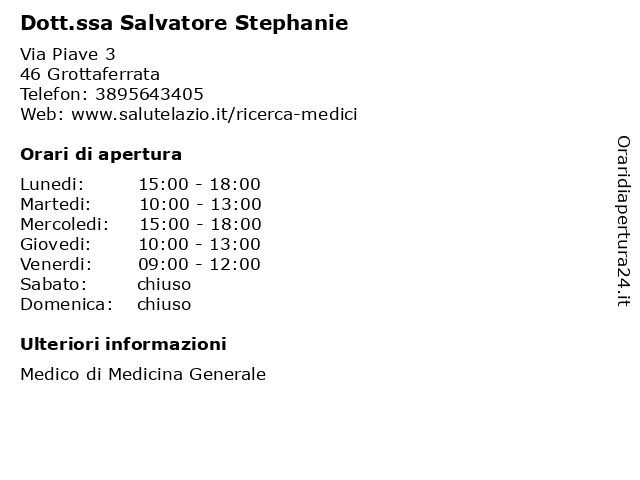 1 Dott.ssa Salvatore Stephanie (distanza: 1,06 km) Viale San Nilo 4, 00046 Grottaferrata ambulatorio, cura della persona, dott.ssa, medicina, medico, prevenzione, salute, salvatore, stephanie 2 Di Renzo Stephanie (distanza: 22,22 km) Vicolo Del Melangolo 6, 00019 Tivoli bar, birrerie, paninoteche, renzo, stephanie 3 Charmant Desiree Marie Stephanie Elis (distanza: 23,35 km) Via Simone De Saint Bon 32, 00195 Roma charmant, comm, desiree, dett, elis, marie, mobili, stephanie 4 Parrucchiere Stephanie (distanza: 32,87 km) Via Capo Spartivento 147, 00100 Roma centro benessere, cura della persona, estetica, parrucchiere, salone di bellezza, stephanie 5 Parrucchiere Stephanie (distanza: 32,87 km) Via Capo Spartivento, 147, 00122 Roma capelli, donna, moda, parrucchiere, stephanie, uomo 6 Dott.ssa Chillà Carmen (distanza: 0,00 km) Via Piave 3, 00046 Grottaferrata (RM) ambulatorio, carmen, chillà, cura della persona, dott.ssa, medicina, medico, prevenzione, salute |