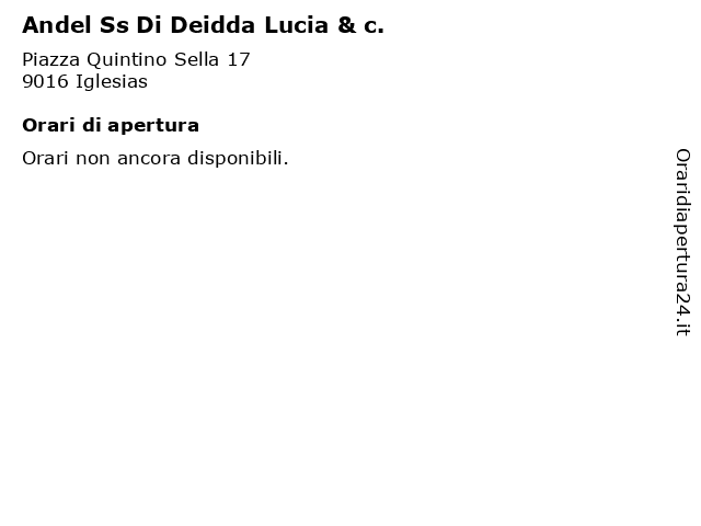 1 Rosticceria Deidda Di Nicoletta Sanna & c. Sas (distanza: 0,13 km) Via Gramsci 15, 09016 Iglesias catering, deidda, nicoletta, ristoranti, rosticceria, sanna 2 Grussu Lucia (distanza: 0,22 km) Mercato Civico Via Gramsci 15 Box n. 6, 09016 Iglesias coloniali, drogherie, grussu, lucia 3 Confezioni Dolci Sardi i Invidia Di Cuscusa Lucia e Sanna Anna Maria & c. Snc (distanza: 0,24 km) Via Pisani 39, 09016 Iglesias anna, catering, confezioni, cuscusa, dolci, invidia, lucia, maria, ristoranti, sanna, sardi 4 Dott.ssa Serra Lucia (distanza: 0,34 km) Via Garibaldi 93, 09016 Iglesias ambulatorio, dott.ssa, dottore, impegnative, lucia, medico, prescrizione farmaci, ricette, serra, visite 5 Demauto Di Deidda Enzo (distanza: 0,48 km) Regione Su Pardu, 09016 Iglesias automobili, deidda, demauto, enzo, rivend, usate 6 New Ecology Autospurghi di Melis Maria Lucia (distanza: 4,23 km) Località Sa Stoia s.n.c., 09016 Iglesias assistenza condiminiale, autospurghi, di, ecology, industriali, lucia, maria, melis, new, spurgo liquami civili, sturamento condotte, tubazioni domestiche |