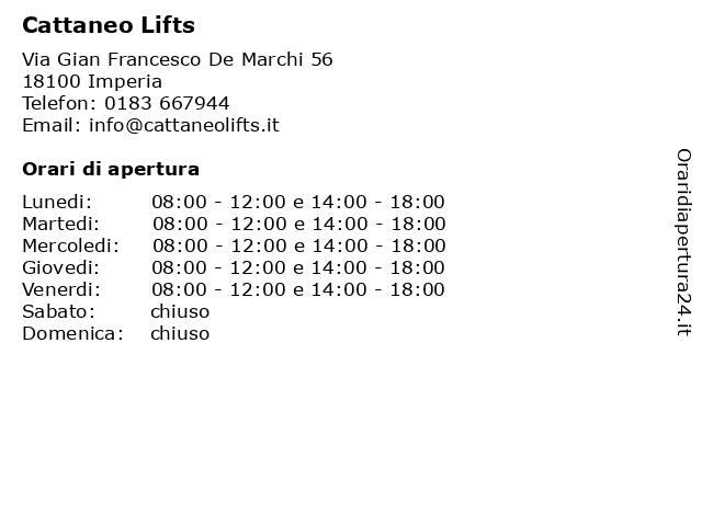 | Lunedi | 08:00-12:00 e 14:00-18:00 |