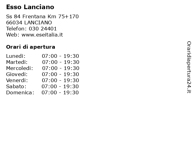 | Lunedi | 07:00-19:30 |