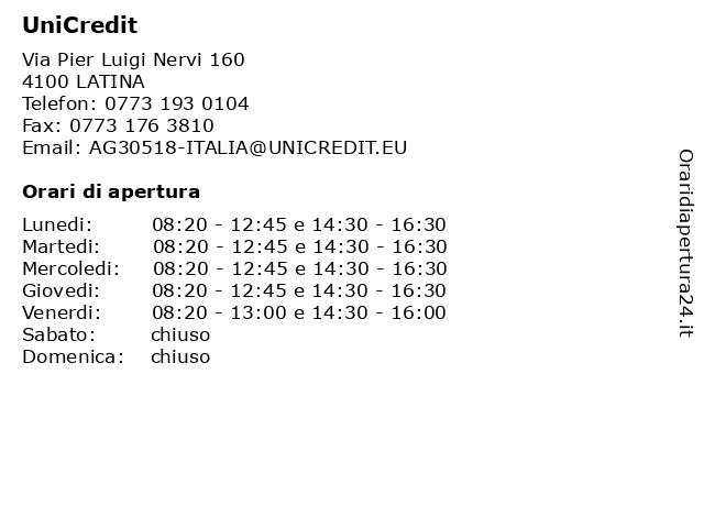 3 Unicredit (distanza: 1,48 km) Via Guido Reni 14, 04100 Latina assicurazione per la casa, assicurazione per la persona, banca, carta prepagata, conto, creditexpress dynamic, finanziamenti, genius first, genius smart, investimenti, mutui, prestiti personali, super genius 2.0, unicredit, unicreditcard click, unicreditcard flexia classic 5 Unicredit (distanza: 1,70 km) Via Piave 2/C, 04100 Latina assicurazione per la casa, assicurazione per la persona, banca, bancomat, carta prepagata, conto, creditexpress dynamic, finanziamenti, genius first, genius smart, investimenti, mutui, prestiti personali, super genius 2.0, unicredit, unicreditcard click, unicreditcard flexia classic 6 Unicredit (distanza: 1,75 km) Via Isonzo s.n.c., 04100 Latina banca, conto corrente, depositi, unicredit |