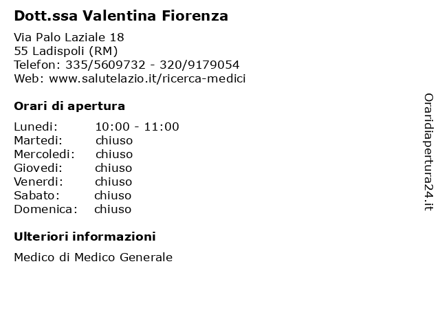 1 Onorati Valentina (distanza: 0,31 km) Via La Spezia 5/c, 00055 Ladispoli abbigl, comm, dett, genere, onorati, valentina 2 Valentina Fileni Estetista (distanza: 0,65 km) Via Livorno 27/a, 00055 Ladispoli Rm centro, estetico, estetista, fileni, valentina 3 Fattoruso Valentina (distanza: 0,76 km) Viale Italia 5, 00055 Ladispoli abbigl, comm, dett, fattoruso, genere, valentina 4 Silvestri Valentina (distanza: 0,95 km) Piazzale Roma Snc, 00055 Ladispoli edicole, giornalai, silvestri, valentina 5 Dott.ssa Fiorenza Valentina (distanza: 1,39 km) Via Berna 6/A, 00055 Ladispoli ambulatorio, dott.ssa, fiorenza, medicina, medico, medico di famiglia, pediatra, sanità, studio medico, valentina, visite 6 Valentina d.m. Srl (distanza: 5,55 km) Viale Alessandro Manzoni 66, 00052 Cerveteri articoli, comm, dett, valentina, vari |