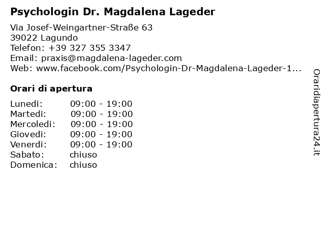 | Lunedi | 09:00-19:00 |