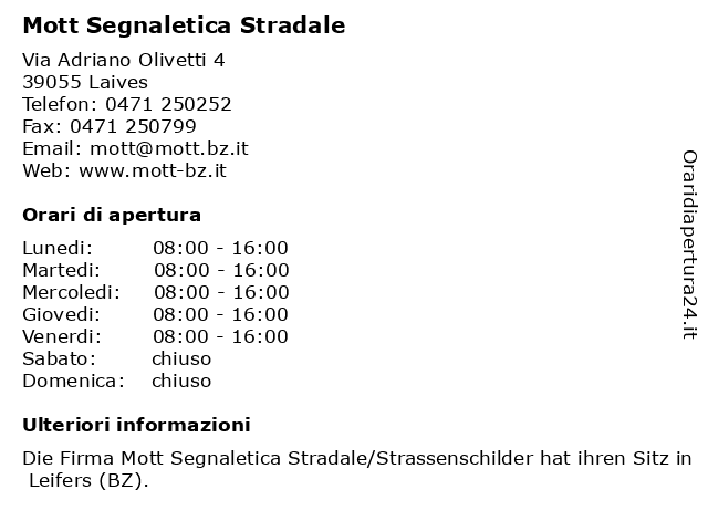 1 Sezione Polizia Stradale (distanza: 5,35 km) Largo Giovanni Palatucci 1, 39100 Bolzano bolzano, bozen, commissariato, polizia, sezione, stradale, verkehrpolizeibezirk 2 Provincia Autonoma Di Bolzano - Alto Adige Punto Logistico Stradale Punto Logistico Stradale (distanza: 18,95 km) Frazione Narano 19, 39010 Tesimo adige, alto, autonoma, bolzano, logistico, provincia, punto, stradale 3 Comune di Merano (Servizio Viabilità e Segnaletica) (distanza: 28,44 km) Via Portici 192, 39012 Merano (BZ) (servizio, comune, contenzioso, merano, merano comune, segnaletica, segnaletica), servizio, viabilità 4 Tyrol Food & Services Di Mott Lavinia (distanza: 40,81 km) Via Alcide De Gasperi 5, 38054 Primiero San Martino Di Castro coloniali, drogherie, food, lavinia, mott, services, tyrol 5 Duesse Segnaletica (distanza: 43,23 km) Via Solteri 39/1, 38121 Trento azienda di produzione, duesse, fornitore di attrezzature commerciali e industriali, lavori in casa, plastica, segnaletica, servizio di restauro artistico 6 Andreatta & Nicoletti (distanza: 45,35 km) Via Brescia 19/c, 38122 Trento abbigliamento, andreatta, coppe, distintivi, gadget, gagliardetti, medaglie, nicoletti, segnaletica, trofei |