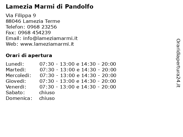 Lunedi | 07:30-13:00 e 14:30-20:00 |