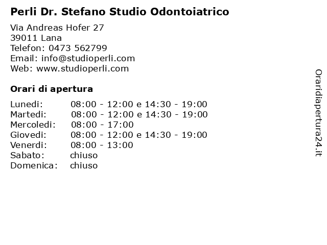 | Lunedi | 08:00-12:00 e 14:30-19:00 |