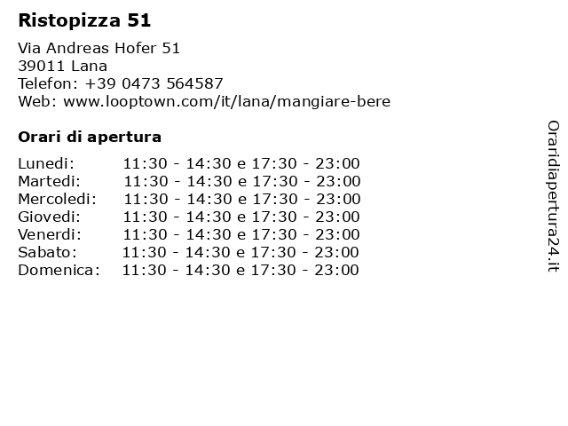 Lunedi | 11:30-14:30 e 17:30-23:00 |