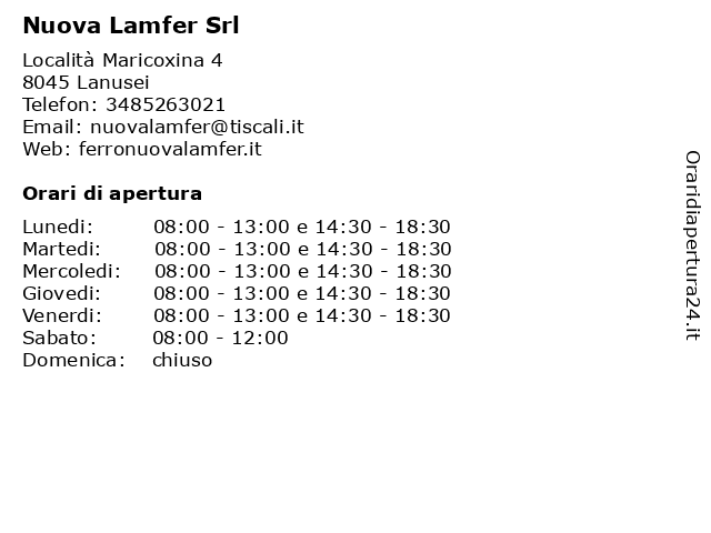 | Lunedi | 08:00-13:00 e 14:30-18:30 |