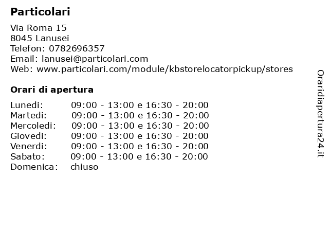 Lunedi | 09:00-13:00 e 16:30-20:00 |