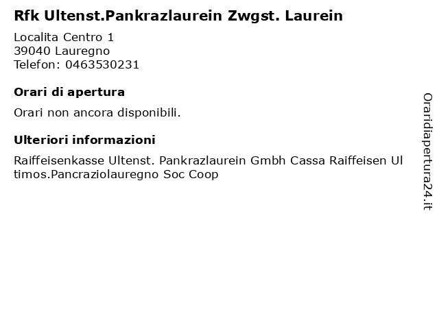 | Chiama Rfk Ultenst.Pankrazlaurein Zwgst. Laurein | |