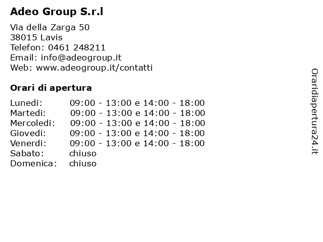 | Lunedi | 09:00-13:00 e 14:00-18:00 |