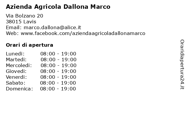 | Lunedi | 08:00-19:00 |