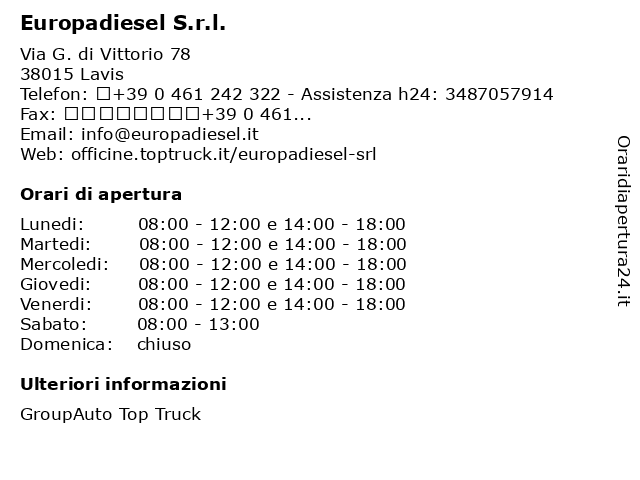 | Lunedi | 08:00-12:00 e 14:00-18:00 |