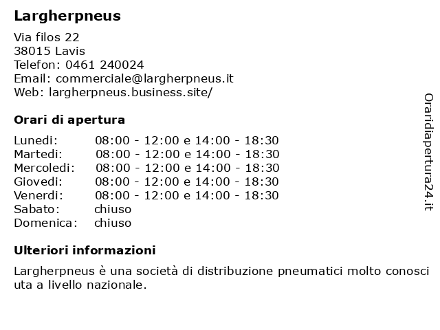 | Venerdi | 08:00-12:00 e 14:00-18:30 |