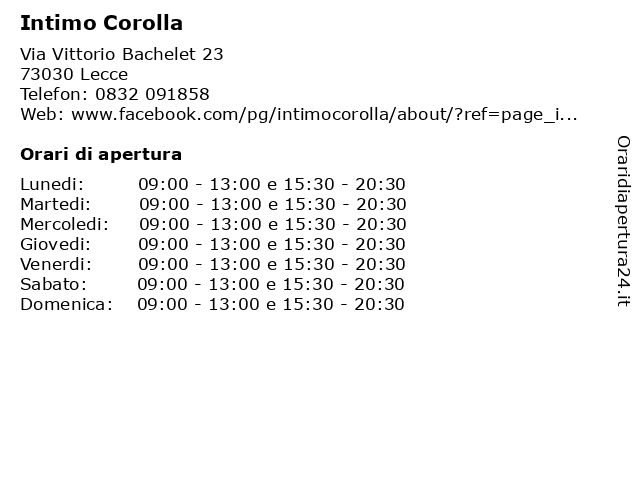 | Sabato | 09:00-13:00 e 15:30-20:30 |