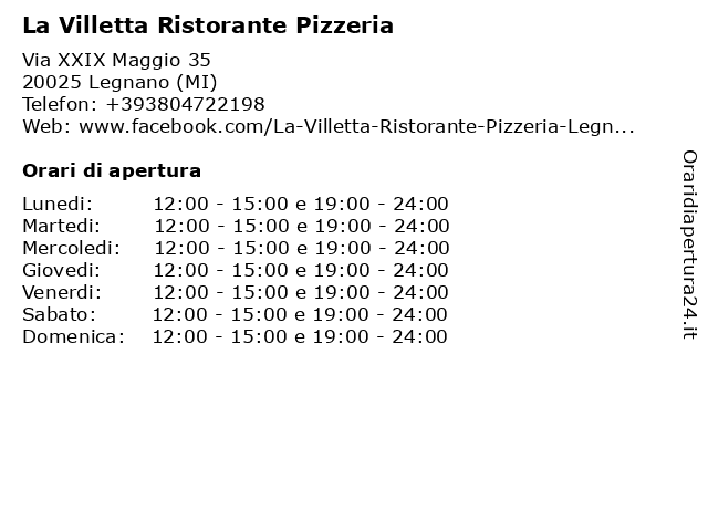 Lunedi | 12:00-15:00 e 19:00-24:00 |