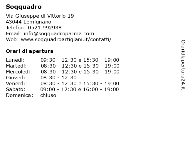 | Sabato | 09:00-12:30 e 16:00-19:00 |