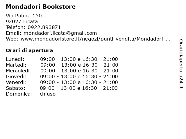 | Lunedi | 09:00-13:00 e 16:30-21:00 |