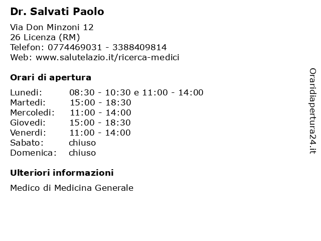 | Lunedi | 08:30-10:30 e 11:00-14:00 |