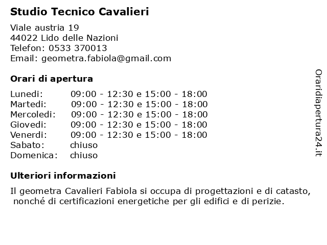 Lunedi | 09:00-12:30 e 15:00-18:00 |