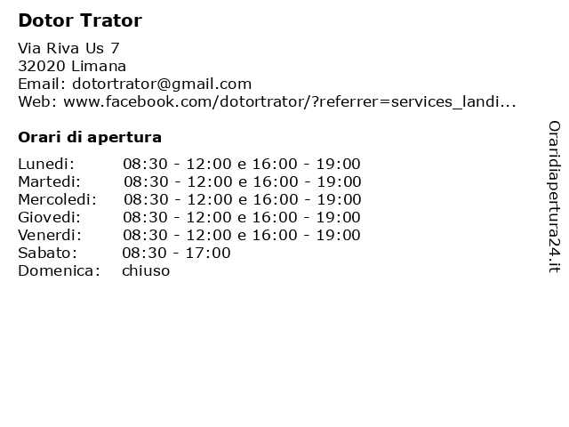 | Lunedi | 08:30-12:00 e 16:00-19:00 |