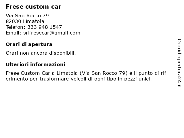 1 G.t.Car Di Domenico Giordano Snc (distanza: 4,26 km) Strada Statale 265 Snc, 82030 Dugenta benzina, distributori, domenico, giordano 2 Autofficina Safety Car Srl Centro Revisioni (distanza: 4,80 km) Via San Nicola 1, 82030 Dugenta autofficina, car, centro, revisioni, safety, srl 3 Di Caprio Car Service (distanza: 7,92 km) Via Variante Sannitica 18, 81020 Valle di Maddaloni caprio, car, service, test sulle emissioni 4 Car Style Di Giovannettone Claudio (distanza: 8,03 km) Via Michelangelo Buonarroti 81, 81050 Portico Di Caserta automobili, claudio, giovannettone, nuove, rivend, style, usate 5 Car Center Rent (distanza: 8,06 km) Via Appia 11, 81100 Caserta automobili, autonoleggio, car, center, concessionaria automobili, prestito automobili, rent 6 La Luisa Car - American Car (distanza: 9,05 km) Via Roma 187, 81100 Caserta american, car, la, luisa, officina, revisioni, rimessa, riparazioni |