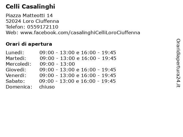 Sabato | 09:00-13:00 e 16:00-19:45 |