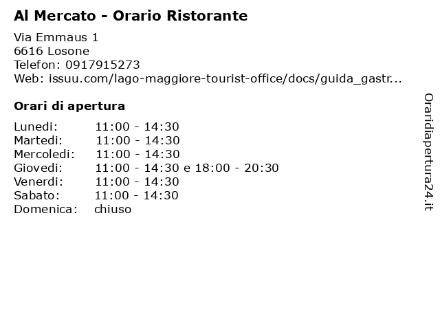 | Giovedi | 11:00-14:30 e 18:00-20:30 |