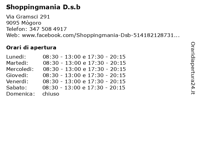 | Sabato | 08:30-13:00 e 17:30-20:15 |