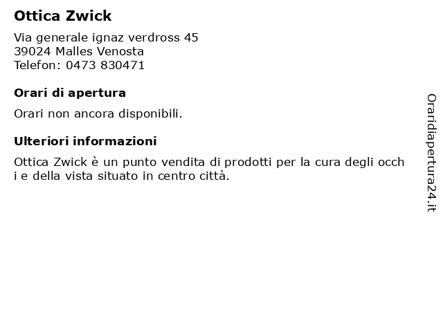 2 Ottica Gritsch (distanza: 8,92 km) Via Silbergasse 38 A, 39026 Prato allo Stelvio analisi visive, gritsch, lenti a contatto, occhiali da sole, occhiali da vista, ottica 3 Look by centro ottico mottini (distanza: 34,82 km) Via Ostaria 578, 23030 Livigno by, centro, lenti, look, mottini, occhiali, ottica, ottico 4 Optik Guenther Ottica Des Mazzari Guenther (distanza: 46,82 km) Via Delle Corse 35, 39012 Merano articoli, comm, des, dett, guenther, mazzari, optik, ottica, vari 5 Ottica Wassermann (distanza: 46,96 km) Corso della Libertŕ 162, 39012 Merano analisi visive, lenti a contatto, occhiali da sole, occhiali da vista, ottica, wassermann 6 Ottica Graf Sas Di Comel Stefano & Co (distanza: 47,04 km) Via Portici 200, 39012 Merano articoli, comel, comm, dett, graf, ottica, stefano, vari |