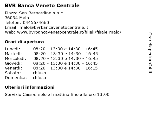 1 BVR Banca Veneto Centrale (distanza: 5,12 km) Viale Europa 17/A, 36035 Marano Vicentino alto, banca, banche, bvr, centrale, finanziamenti, finanziaria, prelievi, prestiti, riunite, venete, veneto, versamenti, vicentino 2 BVR Banca Banche Venete Riunite (distanza: 6,13 km) Via Pista dei Veneti 14, 36015 Schio alto, banca, banche, bvr, finanziamenti, finanziaria, prelievi, prestiti, riunite, venete, versamenti, vicentino 3 BVR Banca Banche Venete Riunite (distanza: 6,60 km) Via Luigi Dalla Via 5/C, 36015 Schio alto, banca, banche, bvr, cassa, coop, cooperativo, credito, ordinario, pedemonte, risparmio, riunite, roana, schio, soc, venete, vicentino 4 BVR Banca Banche Venete Riunite (distanza: 7,01 km) Via Roma 34, 36030 Villaverla alto, banca, banche, bvr, finanziamenti, finanziaria, prelievi, prestiti, riunite, venete, versamenti, vicentino 5 BVR Banca Banche Venete Riunite (distanza: 7,11 km) Galleria Petange 9, 36015 Schio alto, banca, banche, bvr, finanziamenti, finanziaria, prelievi, prestiti, riunite, venete, versamenti, vicentino 6 BVR Banca Banche Venete Riunite (distanza: 7,76 km) Via P. Maraschin 52, 36015 Schio alto, banca, banche, bvr, finanziamenti, finanziaria, prelievi, prestiti, riunite, venete, versamenti, vicentino |