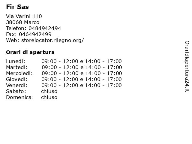 | Venerdi | 09:00-12:00 e 14:00-17:00 |