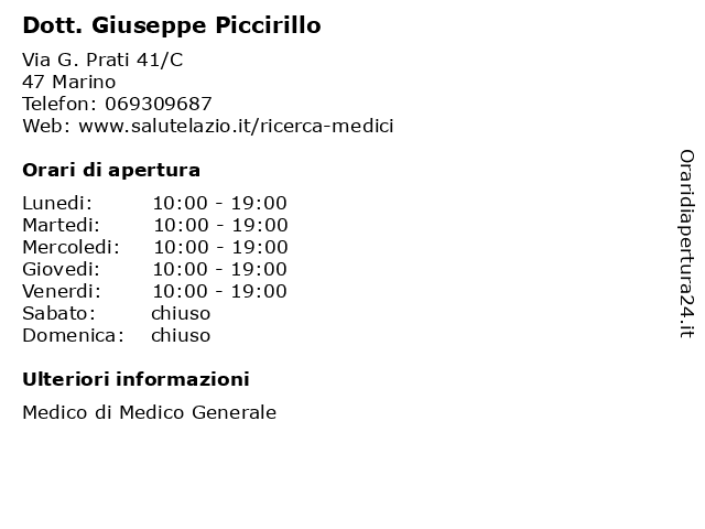 1 Dott. Giuseppe Piccirillo (distanza: 1,45 km) Via Nettunense Vecchia 76, 00047 Marino ambulatori, analisi, cura della persona, cure, dott., giuseppe, medici, medicina, piccirillo, sanità, visite mediche 2 Dott. Piccirillo Giovanni (distanza: 0,00 km) Via Giovanni Prati 41/C, 00047 Marino Laziale ambulatori, analisi, cura della persona, cure, dott., giovanni, medici, medicina, piccirillo, sanità, visite mediche 3 Dr.ssa Piccirillo Anna (distanza: 0,00 km) Via G. Prati 41/C, 00047 Marino Laziale ambulatori, analisi, anna, cura della persona, cure, dr.ssa, medici, medicina, piccirillo, sanità, visite mediche 4 Dott.ssa Piccirillo Maria (distanza: 0,00 km) Via Giovanni Prati 41/C, 00047 Mariano Laziale ambulatori, analisi, cura della persona, cure, dott.ssa, maria, medici, medicina, piccirillo, sanità, visite mediche 5 Music Lovers Event Management by Tony Piccirillo (distanza: 15,93 km) Via Della Rustica 304, 00155 Roma (RM) belleza, by, dream, event, hair, lovers, management, music, parrucchieri, piccirillo, salud, spa, tony 6 Piccirillo Immacolata (distanza: 16,85 km) Via Duchessa Di Galliera 68, 00151 Roma comm, dett, immacolata, piccirillo, scarpe |