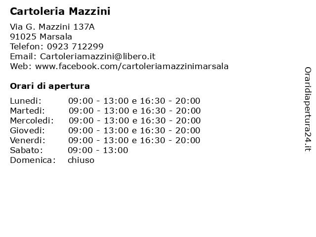 | Martedi | 09:00-13:00 e 16:30-20:00 |